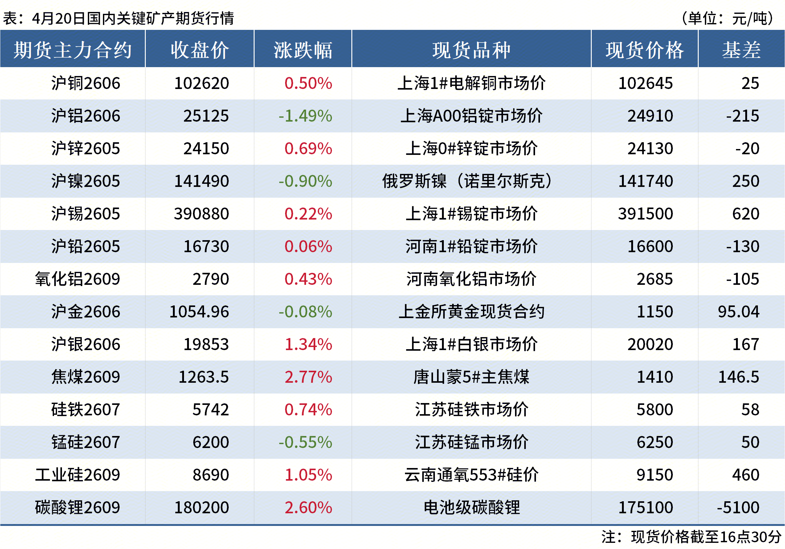 ◎截至4月20日,共有7家上市铜企公布2025年产品产量数据,其中5家同时披露了2026年生产经营计划。其中,2025年全年,江西铜业阴极铜产量为238.04万吨,同比增长3.86%;紫金矿业矿产铜产量为109万吨,同比微增1.87%。详情