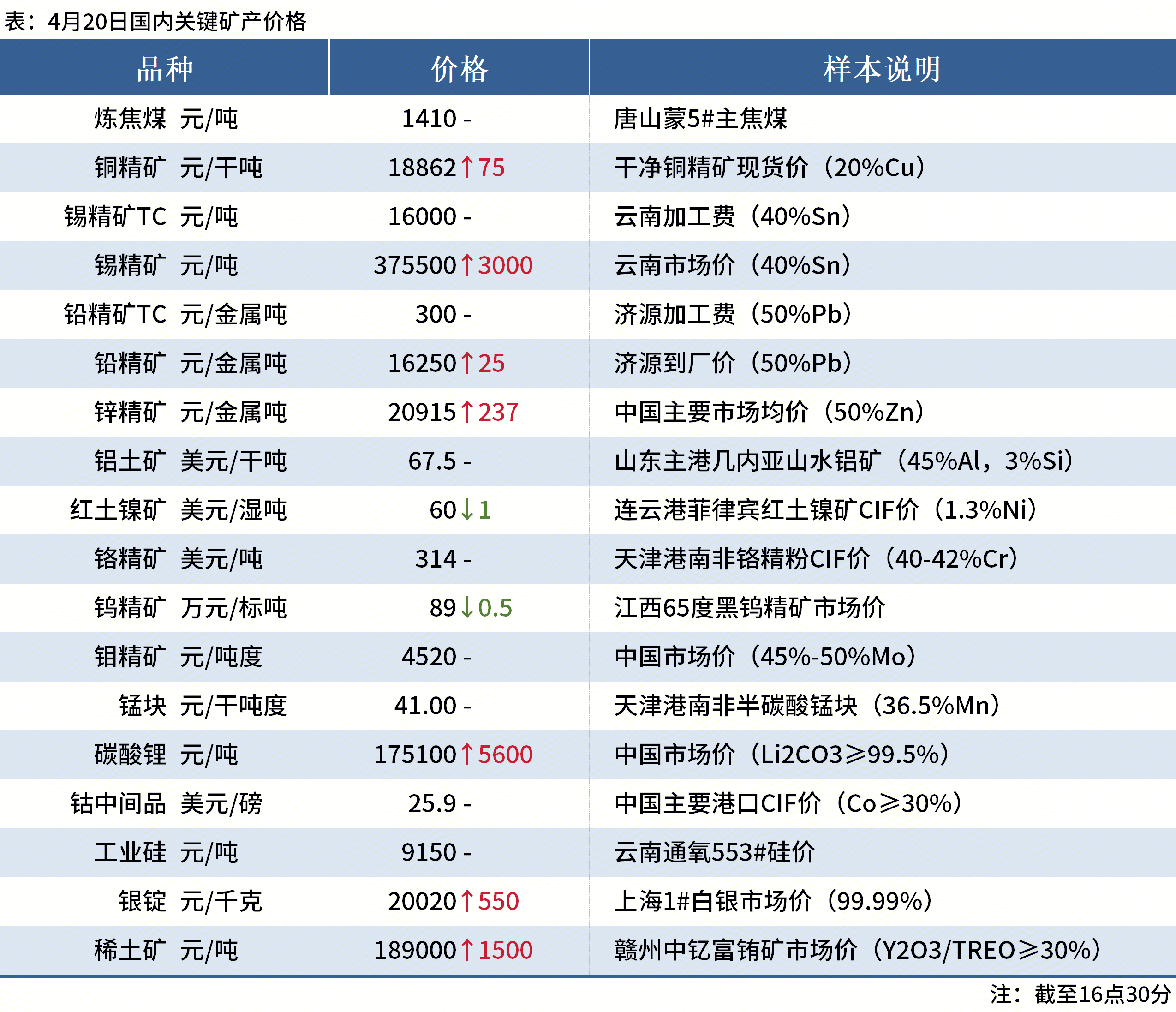 ◎4月20日山东港口进口铁矿(15:15)价格较上一工作日小幅上涨,累计上涨4-8。目前60.8%PB粉主流在775-780;超特粉主流在665-670;麦克粉主流在765-770。(单位:元/湿吨)